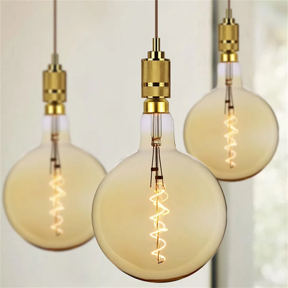 This Amber Large Bulb Spiral Filament offers a unique and stylish touch to any lighting fixture.